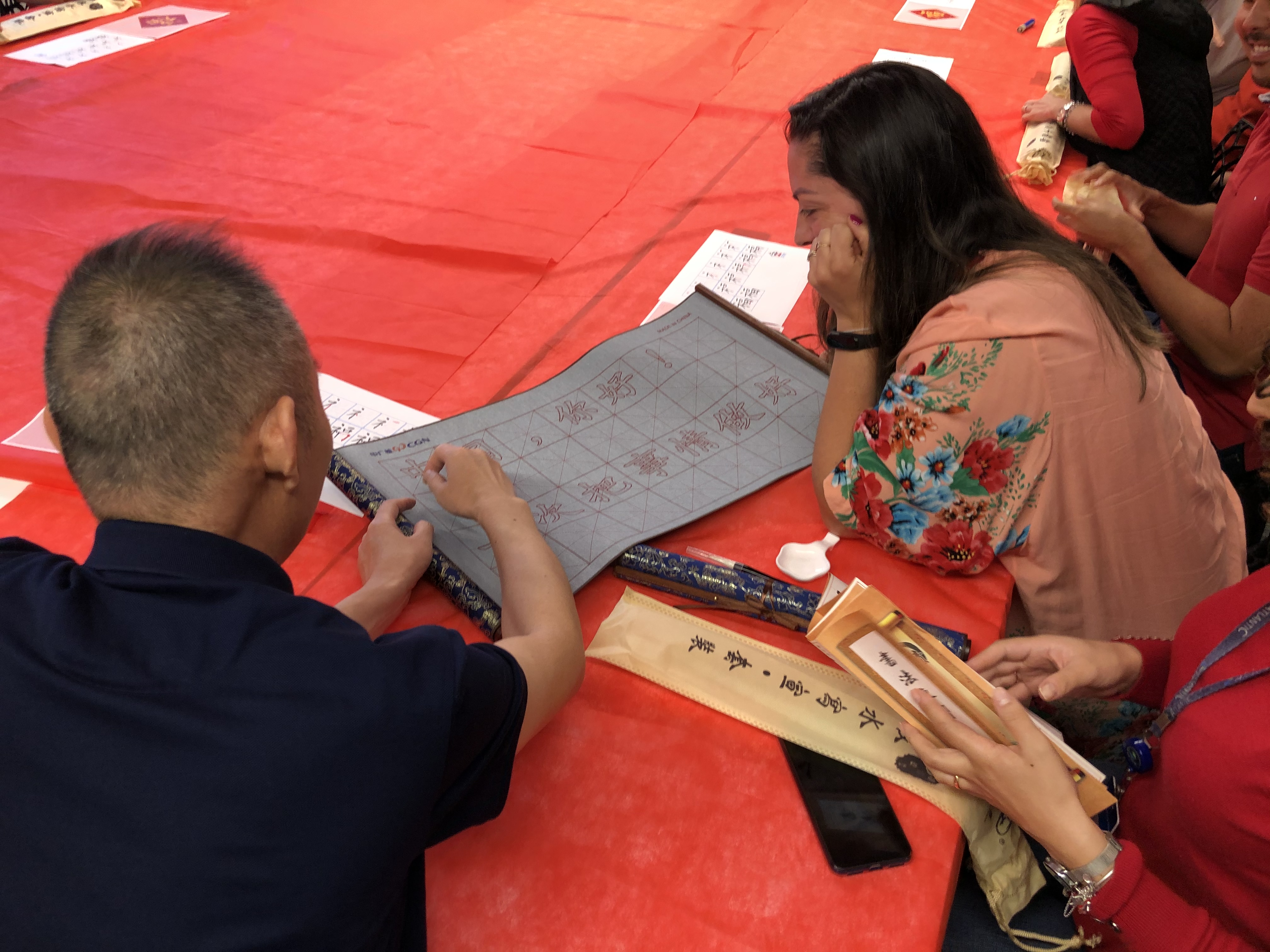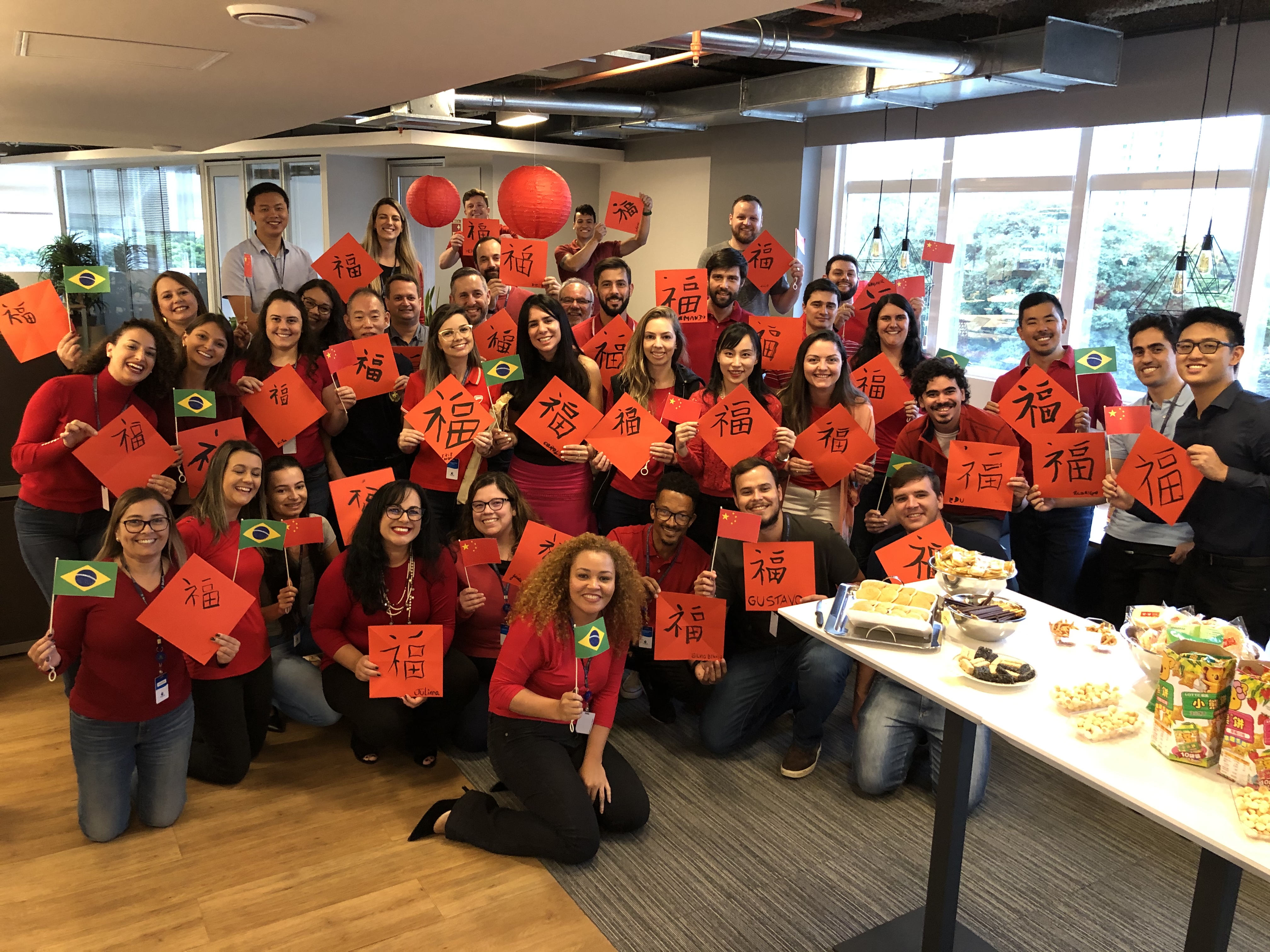2020年1月17日,巴西公司組織“新春送福”活動。圖為員工們展示作品合影